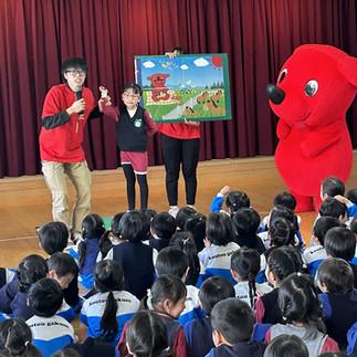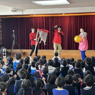 ≪お楽しみ会≫2月19日読了時間: 1分今年の『お楽しみ会』は昨年のゆりーとくんに続き、千葉県マスコットキャラクターである「チーバくん」が幼稚園に来てくれました。最初に全体での記念撮影をしてから、ダンス・クイズ・ゲームなどをして楽しい時間を過ごしました。その後はクラス別記念撮影をして帰り際にひとり一人ハグをして終了しました。最初から最後までみんな大盛り上がりで笑顔一杯でしたよ!! そして今日はチーバくんから貰ったお土産を持ち帰っていますのでお家でお楽しみください。