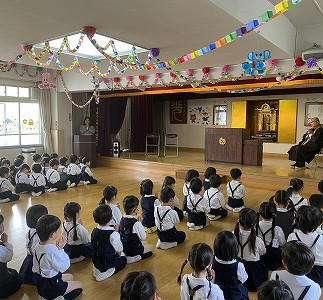 長い春休みでしたが、ひと回り成長した園児をみてこれからの1年間を楽しみにしたいと思います。最後に各学年の先生方からの挨拶と紹介をして、お互いによろしくお願いいたしますと声を掛け合いました。