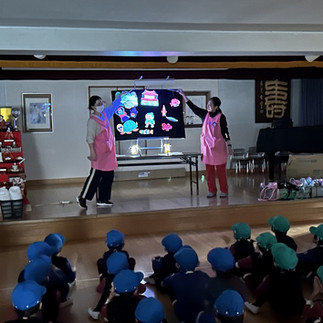 また、鍋を煮込んでいる間は体操の先生によるゲームや先生によるブラックパネルシアター「うらしまたろう」を見て時間を過ごしましたよ!! また年長さんが作ってくれたカレーをほかの学年もお裾分けを頂き給食のお弁当にかけて美味しく食べていました!!!