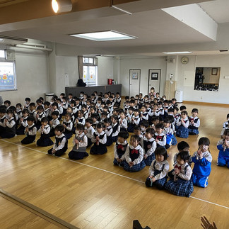 涅槃会とは、お釈迦様がお亡くなりになった日を涅槃会といい、お亡くなりになったことを悲しむのではなく沢山の教えを遺して頂いた結果、親鸞さまが「浄土真宗」を開かれことにより、今の江東学園幼稚園が101年前に誕生して私たちが現在ご縁を得ていることに感謝してお参りをしました。またお釈迦様は全てのいのちを大切にされ、命あるものは必ず死を迎えるのだから、日々に感謝して他者も含めて命の大切さを教えてくださいました。