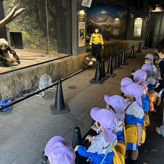 本日は年中組の園外保育で上野動物園へ行ってきました。天候にも恵まれ到着後にゾウやサル・プレーリードッグなどを見て少し早めのお昼(給食のパン持参)を楽しく賑やかに食べました。昼食後は西園に移動してパンダの森に行列は出来ていましたが比較的少なかったので並んでみると10分もかからず見ることが出来ました。そして係の方の配慮で最前列の誘導していただき、ゆり組→ふじ組の順番でゆっくり目の前で見れました。その後は西園のフラミンゴ、ペンギン、両生爬虫類館、キリン、サイ、カバなどを見て幼稚園に予定通り帰ってきました。