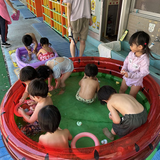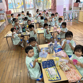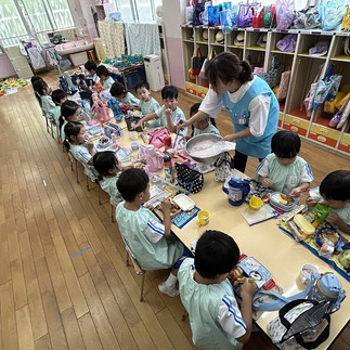 その後は各クラス順番でプールに入ったり、お部屋で遊んだりして過ごしました。また、昨日食べなかったクラス(年中組・くまちゃん組)は昼食時にフルーチェを食べて嬉しそうにしていましたよ。