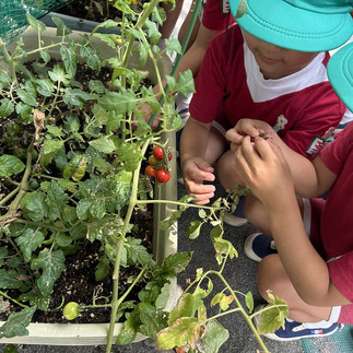年長組の園児が大事に育ててきたミニトマトの実がたくさん赤く実ってきたので、昨日少しずつですがみんなで収穫いたしました。そして今日の給食時に食べることが出来ました。園児の中にはトマトは苦手で今まで食べることが出来なかったけど自分たちで育てたからほんの少しでも食べたいと言って頑張って全員が食べていましたよ!!