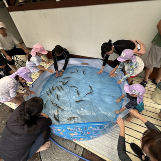 前日から朝にかけての雨で予定していたことが出来るか心配して現地に向かいましたが、天候は回復していて本当に良かったです。ただ"ヤマメつかみ"だけは河原では出来ず民宿内で用意したプールで班別にしましたが大盛り上がりでした。食育の観点から取ったヤマメは一人1匹ずつ夕食で美味しく頂きました。その後は川へ行き浅瀬で流れが緩やかな場所で水鉄砲遊びを中心に遊びました。