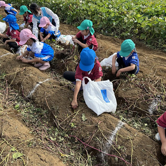 本日は秋の遠足恒例の『お芋堀り』に観光バス3台で埼玉県川越市にある「芋掘り観光 山田園」さんへ今年も行ってきました。天候にも恵まれ出発して高速道路の途中で休憩をはさみ、山田園さんに到着後はまずは年中組から掘り始めて、次に年長・年少組の姉妹クラスで頑張って芋掘りをしました。特に姉妹クラスでは年長組の園児が年少組の園児のお手伝いを笑顔でしている姿が微笑ましかったですよ!!