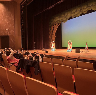 本日は曳舟文化センター大ホールで墨田区私立幼稚園連合会主催・墨田区共催の『第55回 親子観劇会』を行いました。今回は「劇団 飛行船」さんの"ガーガーズコンサート"と"劇 赤ずきん"を観てきました。ガーガーズのコンサートでは歌や体を使って最初から最後まで楽しいコンサートで園児・保護者は大盛り上がりでした。後半には先生や私(園長)まで舞台に駆り出され楽しい時間でした。10分間の休憩後からは"赤ずきん"の劇を楽しく観ることが出来ましたよ!!